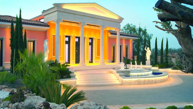وبعد خمس دقائق، انتهى الطريق عند مبنى وردي اللون، وكان بانتظارنا فريق كامل من العمال في منتجع وقصر أنتارا، وبواسطة عربات كتلك التي تستعمل على ملاعب الغولف وصلنا إلى حديقة القصر، التي تحميها تماثيل يونانية وتمثال أفروديت بالتأكيد، وشجرة زيتون عتيقة وأعشاب منسقة، ونافورة مياه أنيقة يقف وراءها باب عملاق، تدخل منه إلى عالم آخر ملؤه السكينة، وهنا لا أبالغ، إذا قلت إنك ستشعر بالرهبة عند دخولك إلى البهو الكبير الذي يتميز بسقوف عالية، وجدران مزينة بأجمل اللوحات بألوان نارية، وأثاث يدخل فيه اللون الأزرق الملكي والأصفر، ومدفأة من الرخام الجميل، وقطع أثرية فريدة، والأهم من هذا كله هو أنك تشعر بأنك في منزل خاص وليس في مركز صحي، وهذا الشيء ليس وليد الصدفة، إنما هو الفلسفة الحقيقية وراء افتتاح هذا القصر، الذي يملكه رجل أعمال مجريّ معروف.