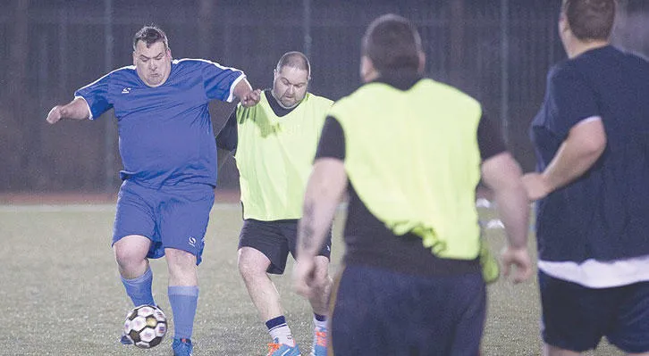 إنهم جميعًا مشاركون في «برنامج كرة القدم: الرجل ضد الدهون»، وهو برنامج إنقاص الوزن الأكثر نجاحًا للرجال في بريطانيا. الاتحادات المختلفة في جميع أنحاء بريطانيا تتكون من فرق يضم كل منها 10 رجال يلعبون مباريات مدتها 30 دقيقة مرة واحدة في الأسبوع لمدة 14 أسبوعًا.