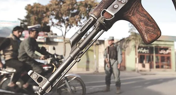 شرطي أفغاني يباشر عمله في نقطة تفتيش داخل العاصمة كابل أمس (أ.ب)