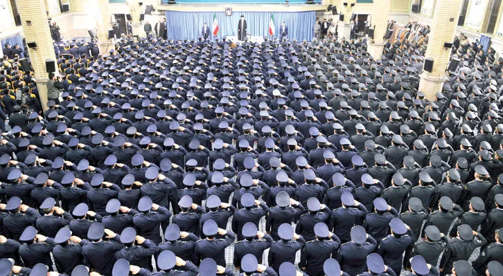 خامنئي لدى إلقاء خطابه أمام قادة القوات الجوية في طهران أمس (أ.ب)