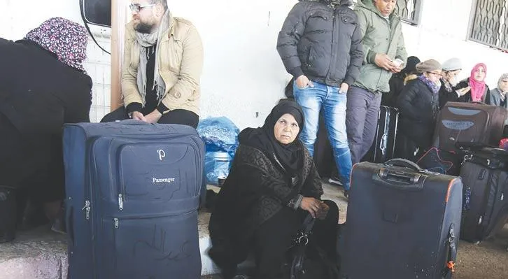 فلسطينيون في انتظار العبور من معبر رفح إلى مصر أمس (إ.ب.أ)