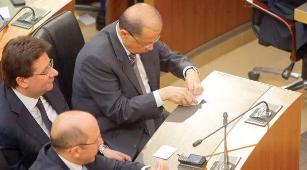 النائب اللبناني ميشال عون زعيم تكتل التيار الوطني الحر يدلي بصوته لاختيار رئيس جديد للبلاد في جلسة البرلمان أول من أمس في بيروت (إ.ب.أ)