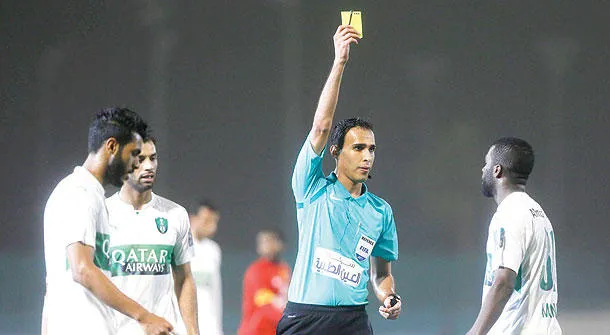 الطريس يشهر البطاقة الصفراء لمنصور الحربي في مباراة الأهلي أمام القادسية (تصوير: عيسى الدبيسي)