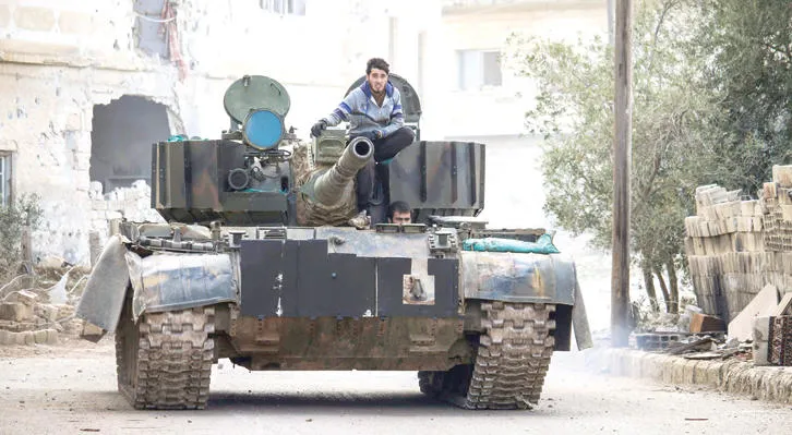 مقاتل من الفصائل المعارضة على دبابة في المناطق غير الخاضعة لسلطة النظام في درعا (أ.ف.ب)