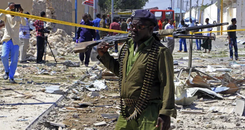 جندي صومالي في موقع هجوم انتحاري في مقديشو الشهر الماضي (أ.ب)