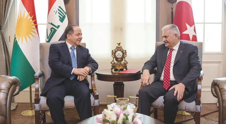 عقد رئيس الوزراء التركي بن علي يلدريم جلستي مباحثات أمس مع رئيس إقليم كردستان العراق مسعود بارزاني، بمقر رئاسة الوزراء في أنقرة، إحداهما ثنائية والأخرى على مأدبة غداء.