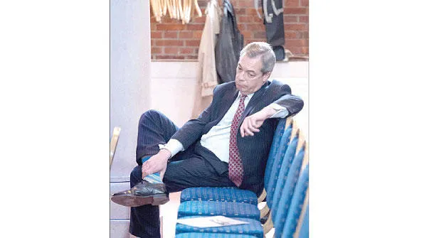 نايجل فاراج الزعيم السابق لحزب الاستقلال الذي قاد حملة الخروج من الاتحاد خلال مؤتمر صحافي في وسط لندن أمس حول الهجرة (أ.ف.ب)