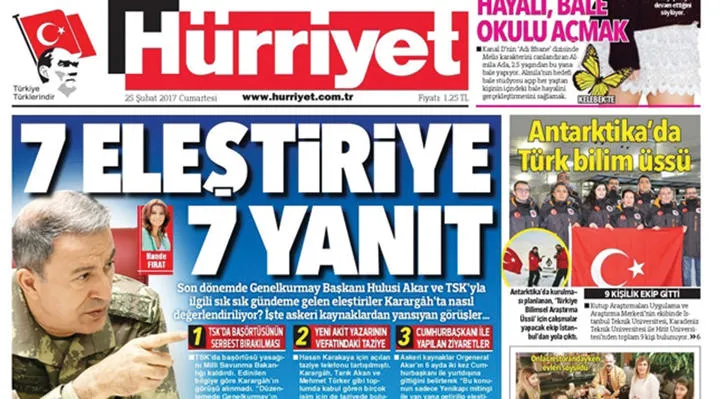 المانشيت الأزمة لصحيفة «حرييت» يقول «سبع إجابات على سبعة انتقادات»