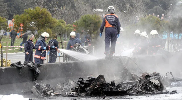 وقال بيان صادر عن وزارة المواصلات والاتصالات والنقل البحري التركية، إن «المروحية أقلعت من مطار أتاتورك ثم اصطدمت ببرج التلفزيون وسقطت على طريق السيارات الرئيسي (إي – 5)».