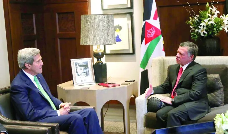 جاء ذلك أمس خلال استقبال الملك عبد الله الثاني لوزير الخارجية الأميركي جون كيري في عمان، الذي يزور الأردن ضمن جولة له في الشرق الأوسط، حيث جرى بحث جهود تحقيق السلام بين الفلسطينيين والإسرائيليين، إضافة إلى مستجدات الأزمة السورية.