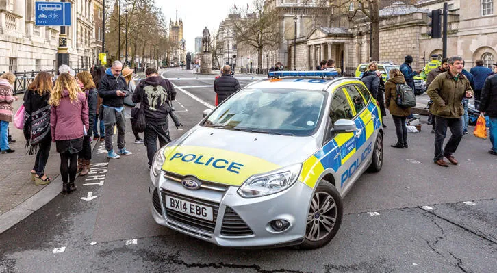 استهدف اعتداء رجَّحَت الشرطة أن يكون إرهابياً محيط البرلمان البريطاني وسط العاصمة لندن، مساء أمس، تزامناً مع الذكرى الأولى لاعتداءات بروكسل الدامية، واجتماع دول التحالف الدولي ضد الإرهاب في واشنطن، عندما دهس المهاجم المارَّة على جسر وستمنستر، في ذروة الحركة، ثم طعن شرطياً بسكين مطبخ، قبل أن يطلق عناصر الأمن النار عليه.