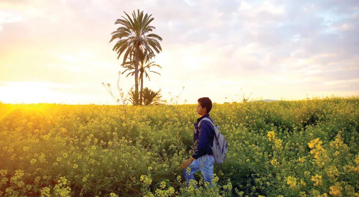 فتى فلسطيني في حقل زهور بغزة (أ.ف.ب)