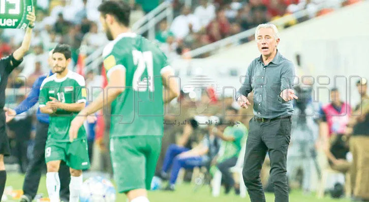 مارفيك يوجه لاعبي الأخضر في مباراة العراق (تصوير: محمد المانع)