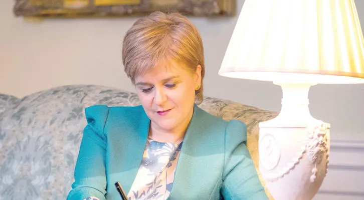 نيكولا ستيرجن تكتب من مكتبها إلى تيريزا ماي (أ.ف.ب)