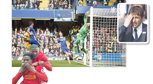 هينيسي حارس بالاس تمكن من إنقاذ سلسلة من الفرص الخطيرة ليمنع تشيلسي من إدراك التعادل (رويترز)... وفي الإطار الهزيمة على ملامح كونتي مدرب تشيلسي (أ.ف.ب) - أوريغي (يسار) يحتفل مع غريغيون بتسجيل هدف الاطمئنان لليفربول (إ.ب.أ)