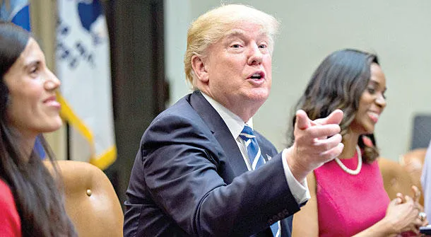 ترمب لدى اجتماعه بسيدات أعمال في قاعة روزفيلت بالبيت الابيض في واشنطن (إ ب أ)