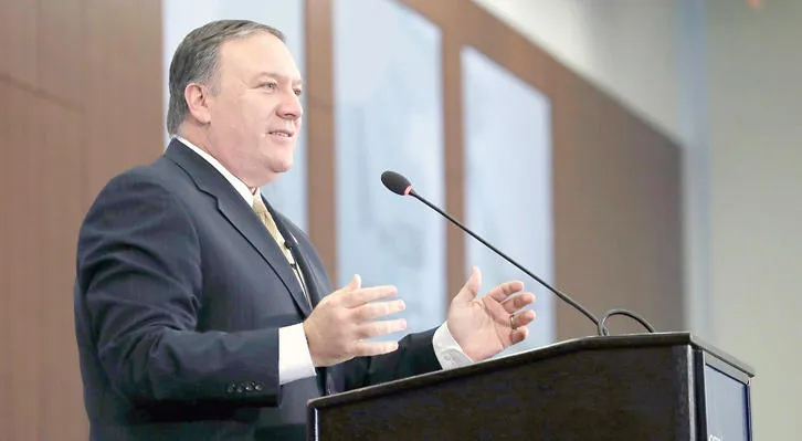 بومبيو خلال كلمته أمام مركز الدراسات الدولية والاستراتيجية في واشنطن (أ.ف.ب)