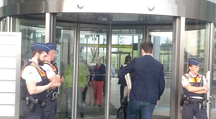 إجراءات أمنية أمام باب محكمة أنتويرب البلجيكية أثناء جلسة محاكمة غيابية لمقاتلين أجانب سافروا إلى سوريا والعراق (تصوير: عبد الله مصطفى)