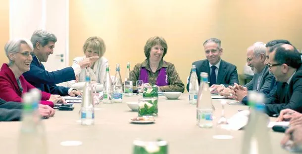 وكانت مشاركة وزراء خارجية الولايات المتحدة وبريطانيا وفرنسا وألمانيا: جون كيري وويليام هيغ وفابيوس وغيدو فسترفيلي، ثم الروسي سيرغي لافروف أمس، والمشاركة المتوقعة لوزير الخارجية الصيني وانغ يي بعد ظهر اليوم، زادت التكهنات بقرب الوصول إلى اتفاق.