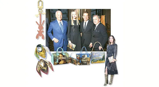 ما قام به جيف كونز لدار «لويس فويتون» أنه أخذ 5 لوحات لخمسة فنانين كبار مثل الـ«موناليزا» لليوناردو دافنشي و«حقول القمح والغربان» لفان غوغ و«البنت والكلب» للفنان فراغونار و«صيد النمر» لبيتر بول روبنز، وأخيرا وليس آخرا لوحة «فينوس وكيوبيد» لتيتيان، ورسمها على هذه الحقائب بشكل شبه حرفي.