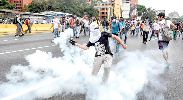 وتدخلت الشرطة لتفريق المتظاهرين، ورشقت شاحنة تابعة للحرس الوطني سلسلة قنابل مسيلة للدموع ضد المتظاهرين على الطريق السريع فرنسيسكو فاجاردو. وقالت ناتاشا بورجيس (17 عاماً) لوكالة الصحافة الفرنسية: «لا يهمني إن تنشقت غازاً، ولا إن مُتّ. يجب أن نتخلص من هذه الحكومة المجرمة القمعية». إلا أن القسم الأكبر من المتظاهرين تراجع في اتجاه شرق كراكاس، وبقيت مجموعة من الشبان الملثمي الوجوه تتحدى القوى الأمنية، وترشقها بالحجارة وزجاجات المولوتوف، بحسب ما أفاد به صحافيون في وكالة الصحافة الفرنسية.