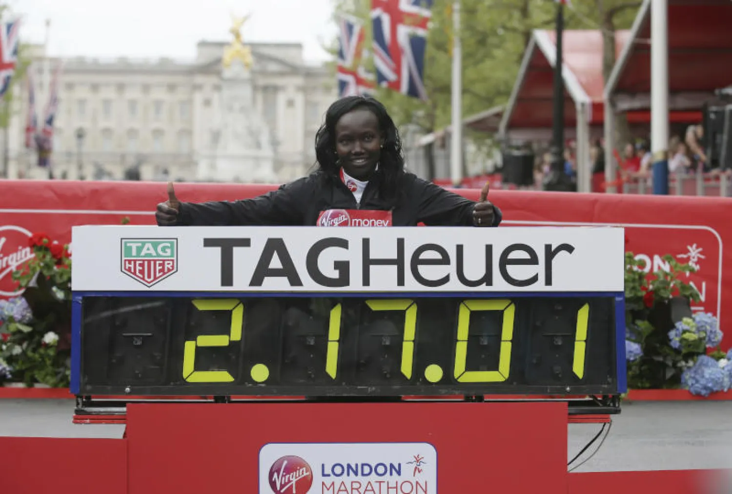 ولا تزال رادكليف تحمل الرقم القياسي المشترك والبالغ ساعتين و15 دقيقة و25 ثانية والذي سجلته في سباق مشترك بين الجنسين في ماراثون لندن في 2003 عندما استخدمت بعض العداءين الذكور لتحديد إيقاع السرعة.