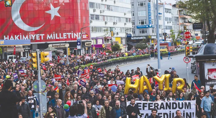 في غضون ذلك، واصل مئات الأتراك احتجاجاتهم بالشوارع في مدينة إسطنبول رفضا لنتيجة الاستفتاء، التي أسفرت عن تأييد التعديلات الدستورية بفارق ضئيل. وأعلن المتظاهرون أنهم سيبقون بالشوارع حتى إلغاء نتيجة الاستفتاء وإعادته.