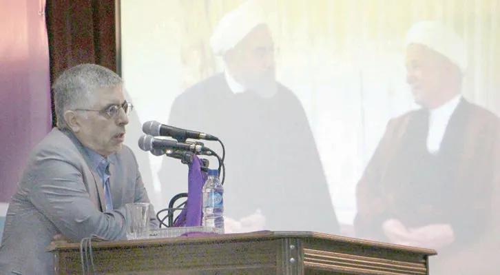 عمدة طهران الأسبق غلام حسين كرباستشي لدى افتتاحه حملة روحاني الانتخابية في أصفهان الجمعة الماضي (موقع الرئيس الإيراني)