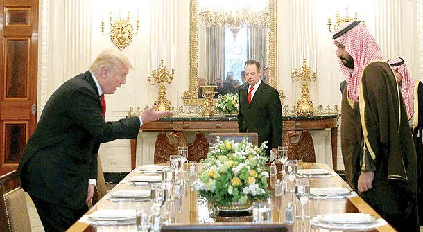 الأمير محمد بن سلمان لدى لقائه الرئيس الأميركي في البيت الأبيض منتصف مارس الماضي (رويترز)
