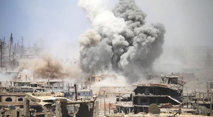 دخان يتصاعد بعد قصف درعا أمس (أ.ف.ب)