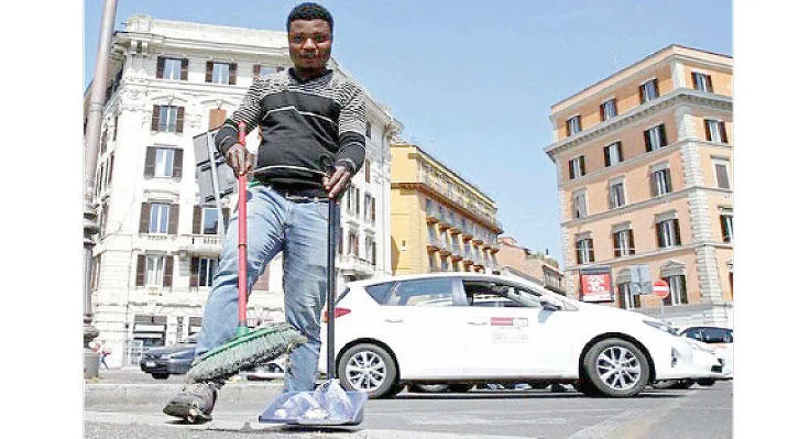 على قطعة صغيرة من الورق المقوى كتبت عبارة «أحاول الاندماج في مجتمعكم بتنظيف شوارعنا» وإلى جوارها كوب ورقي لتبرعات من يقدرون هذا العمل من أهل روما. وتبدو ابتسامة عريضة على وجه كريستيان أوكورو عندما يلقي أحد المارة بقطعة عملة معدنية له وهو يكنس بكل حرص الرصيف في وسط روما ثم يجمع الكناسة في علبة.وأوكورو (27 عاماً)، من ولاية إيبوني في نيجيريا واحد من عدد متزايد من المهاجرين يعملون بكنس الشوارع بدلاً من التسول في شوارع العاصمة الإيطالية. وروما تحتاج لهذه الخدمات حيث تمتلئ صناديق القمامة عن آخرها ومن المشاهد المألوفة القمامة المبعثرة في شوارعها.