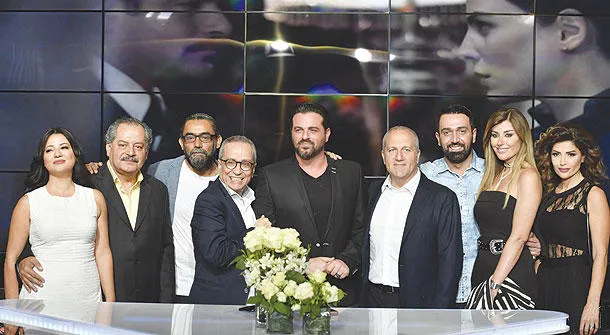 رئيس مجلس إدارة تلفزيون (إم تي في) مع نجوم مسلسل «أدهم بيك»