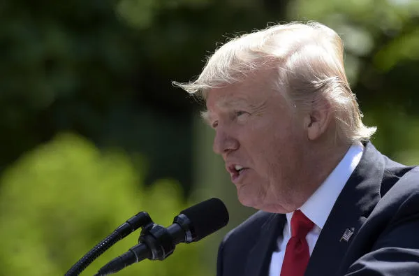 الرئيس الأميركي دونالد ترمب خلال كلمته التي أعلن فيها سحب بلاده من اتفاقية باريس للمناخ (أ.ب)