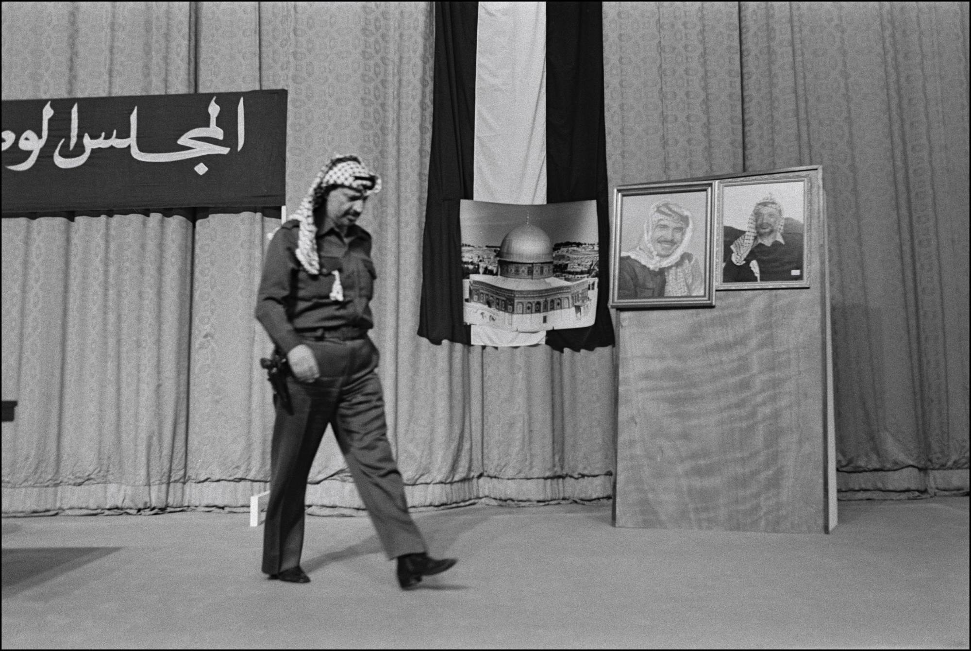 عرفات خلال المجلس الوطني الفلسطيني في عمّان عام 1984 (غيتي)