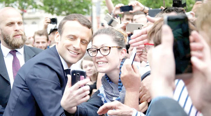 سيلفي مع الرئيس ماكرون في شوارع باريس (رويترز)