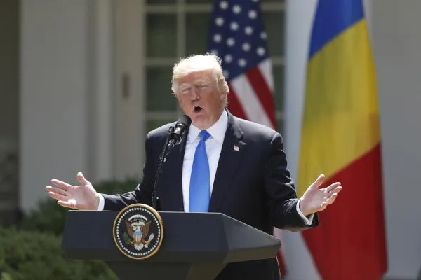 دونالد ترمب خلال مؤتمر صحافي في حديقة الورود بالبيت الأبيض في واشنطن (آ.ب)