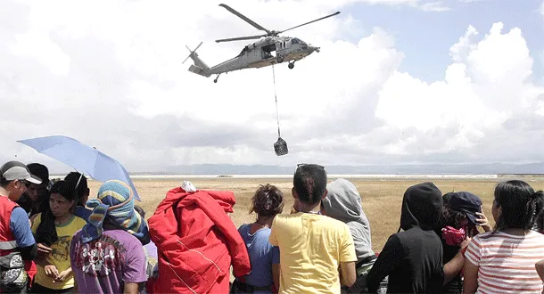 وتواصل أمس تدفق الإعلانات والوعود بتقديم مساعدات مادية أو عينية، فقد أعلنت الكويت تقديم مساعدة عاجلة بعشرة ملايين دولار للفلبين التي تعرضت لإعصار مدمر ضرب أجزاء واسعة منها. وغادرت حاملة الطائرات الأميركية «جورج واشنطن» وعدد كبير من السفن الأخرى للبحرية الأميركية مرفأ هونغ كونغ الثلاثاء وعلى متنها سبعة آلاف بحار، متوجهة بأقصى سرعتها إلى الأرخبيل لنقل الإمدادات الغذائية والمساعدة الطبية. كما أعلنت الولايات المتحدة أمس عن إرسال سفينتين إضافيتين قادرتين على تحلية الماء.