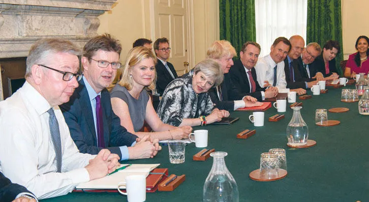 رئيسة الوزراء البريطانية ترأس اجتماعا حكوميا في لندن أمس (رويترز)