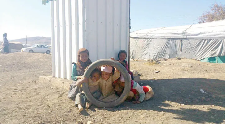 أطفال في معسكر ضروان للنازحين شمال غربي صنعاء («الشرق الأوسط»)
