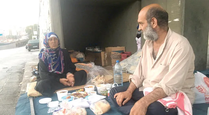 في منطقة الكولا (غرب بيروت)، يمكث الرجل الخمسيني أحمد الشيخاني في الطريق العام منذ مطلع رمضان، بعد أن تعذّر عليه تسديد إيجار المنزل. لا خيار أمام أحمد الذي يعاني من مرض السكري، سوى التشرد، كما يقول لـ«الشرق الأوسط»، ذلك أن التشرد يريحه من النفقات اليومية. فلم تعد هناك أقساط شهرية، تنتظره، ولا مصاريف لتأمين المعيشة. أما فيما يخص برنامج الأمم المتحدة للمساعدات الغذائية، فيؤكد أنه «لم يعد مسجّلاً في مفوضية الأمم منذ سنتين، عندي 4 شبان فوق السن القانونية (18 سنة)، ما يعني بحسب الشروط أنني لستُ بحاجة إلى مساعدة، ولذلك لا أستفيد من أي تقديمات». ورغم أن التشرد قاسٍ، لكنه حل ريثما يتمكن أحمد من إيجاد عمل وتأمين الدخل. يقول: «نحن هنا فقط في شهر رمضان، نأكل مما يقدم الناس لنا، وننام على الرصيف».