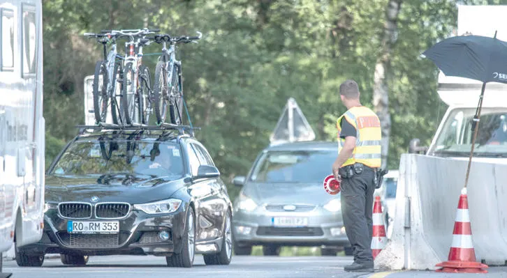 شرطة الحدود على نقاط العبور بين ألمانيا والنمسا التي أقيمت العام الماضي للحد من حركة اللاجئين (إ.ب.أ)