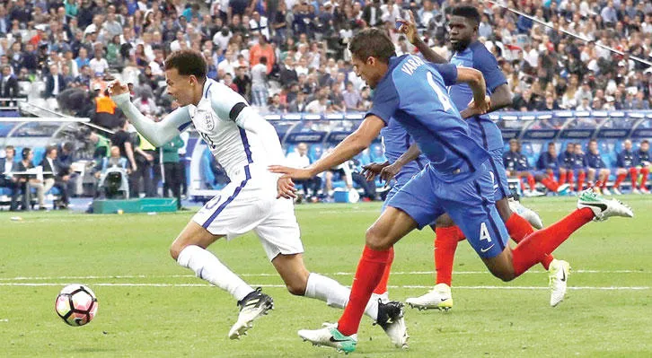 كشفت المباراة عن ضعف الموارد أمام إنجلترا. وخلال اللقاء، جرت الاستعانة بأليكس أوكسليد تشامبرلين - كلاعب خط وسط مهاجم وهو الذي شارك مؤخراً كجناح ظهير في صفوف آرسنال - في دور دفاعي بخط الوسط حيث بدا تائهاً، في الوقت الذي لم يجد فيه مساعدة من إريك دير الذي يلعب بجواره. من جهته، قدم ديلي إلى إسهامات محورية في الأهداف التي سجلتها إنجلترا، لكنه قضى الكثير من وقت المباراة على الجناح الأيسر، حيث جاء دوره هامشياً تماماً. وخلال الشوط الثاني، لعب جونز في غير مركزه كظهير أيمن، بينما لعب كايل والكر إلى اليسار. ومقارنة بمرونة وتألق أداء اللاعبين الفرنسيين، بدا أداء لاعبي إنجلترا بطيئاً ورديئاً. وفي الوقت الذي بدأت فرنسا المباراة بثلاثة من عناصر فريق أقل من 20 عاماً الذي اقتنص بطولة كأس العالم عام 2013، بدت إنجلترا التي فازت بالبطولة ذاتها الأسبوع الماضي، في حاجة ماسة لدفقة مشابهة من دماء شابة جديدة.