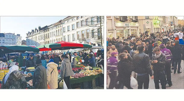 {حراس السلام} يشاركون في حفظ الاستقرار بمولنبيك أثناء الأنشطة المختلفة - سوق بلدية مولنبيك في بروكسل حيث ت عيش غالبية من المسلمين