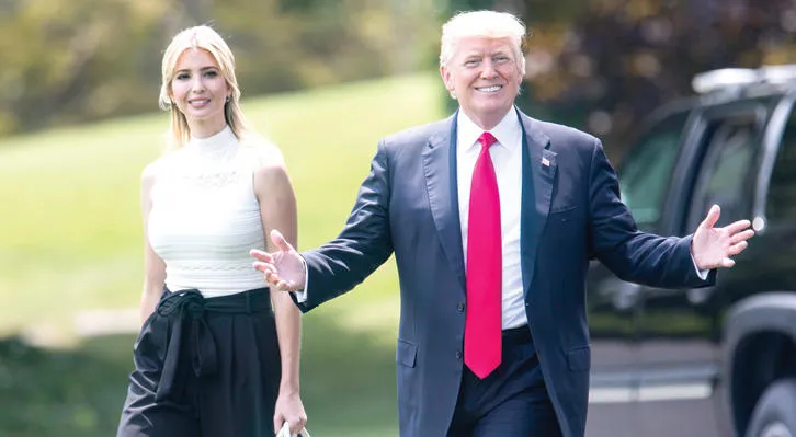 ترمب وابنته إيفانكا لدى مغادرتهما البيت الأبيض قبل أيام (إ.ب.أ)