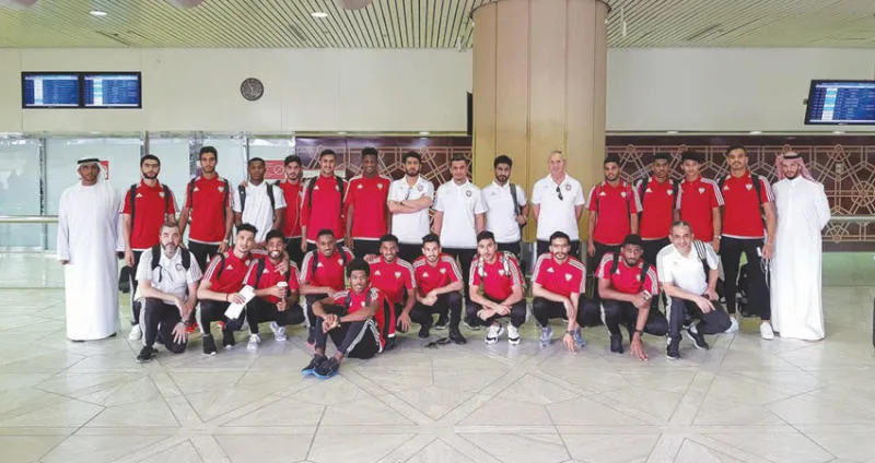 بعثة المنتخب الإماراتي الأولمبي لدى وصوله إلى الرياض أمس («الشرق الأوسط»)