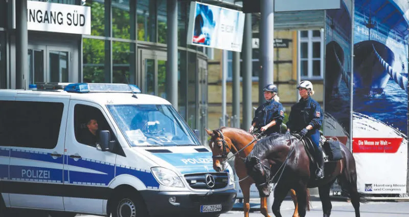 الشرطة الألمانية تؤمّن مركز هامبورغ للمؤتمرات حيث ستعقد قمة العشرين (رويترز)