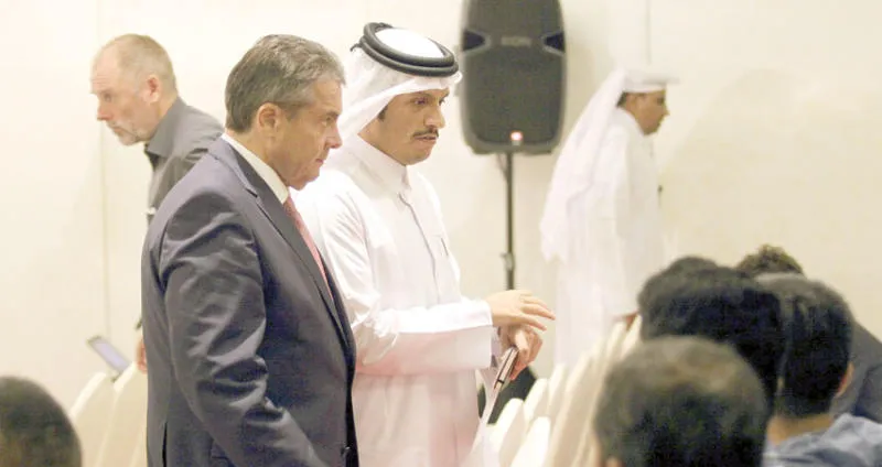 وزيرا خارجية ألمانيا وقطر في ختام مؤتمرهما الصحافي في الدوحة أمس (رويترز)