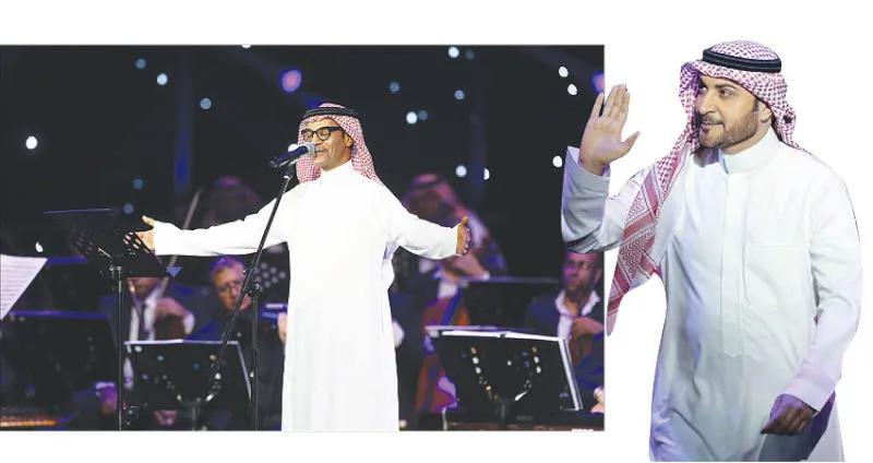 وكانت البداية مع الفنان ماجد المهندس بتقديم 13 أغنية، منها «هدوء» و«تناديك» و«بين غلاي» و«ندامة» و«أخ قلبي»، قبل أن يستمتع الحضور بموال «كون يمك» ليواصل معها المهندس الإبداع بـ«تحبك روحي» و«ياحب ياحب» تلتها أغنية «المشاعر» و«عاشق» و«أنت ملك» و«أنا بلياك». بينما شهدت الوصلة الغنائية للفنان عبد الله الرويشد 12 أغنية تنوع من خلالها بالتنقل بين أبرز أغانية القديمة والجديدة، مفتتحاً وصلته الغنائية بـ«عاش أبو فهد» تلتها «وحشت الدار» وعلى «كثر العيون» و«تعال» و«أنا مو ولهان» و«ما في أحد مرتاح» و«أنا بتبع قلبي» و«أبيك بعيوبك أبيك» و«أنا مقدر على الفرقى» و«لمني بشوق» و«حلو الأطباع».