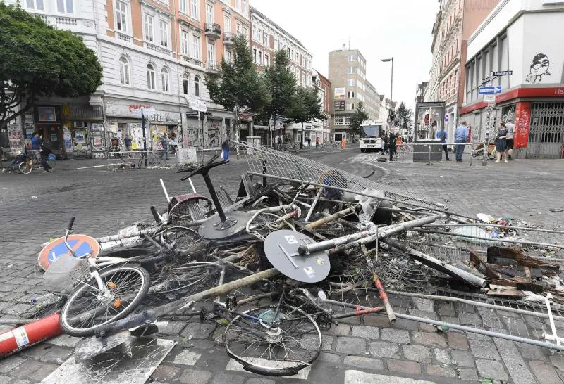 * نجح ضباط الشرطة الذين ساعدتهم شرطة مكافحة الشغب في تطهير معظم أنحاء شارع في شانتسنفيرتل بوسط هامبورج في وقت مبكر من اليوم (السبت)، والذي كان مسرحاً لمواجهات عنيفة مع المتظاهرين في وقت سابق. وكان شارع شولتربلات قد تحول إلى ما يشبه مركز عمليات للمتظاهرين الذين يحرضون على قمة مجموعة العشرين.