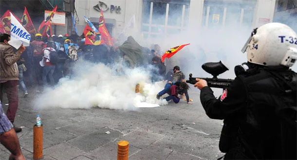 واشتبك آلاف المتظاهرين مع الشرطة في أنقرة واسطنبول أمس متهمين الحكومة وصناعة المناجم بالإهمال.